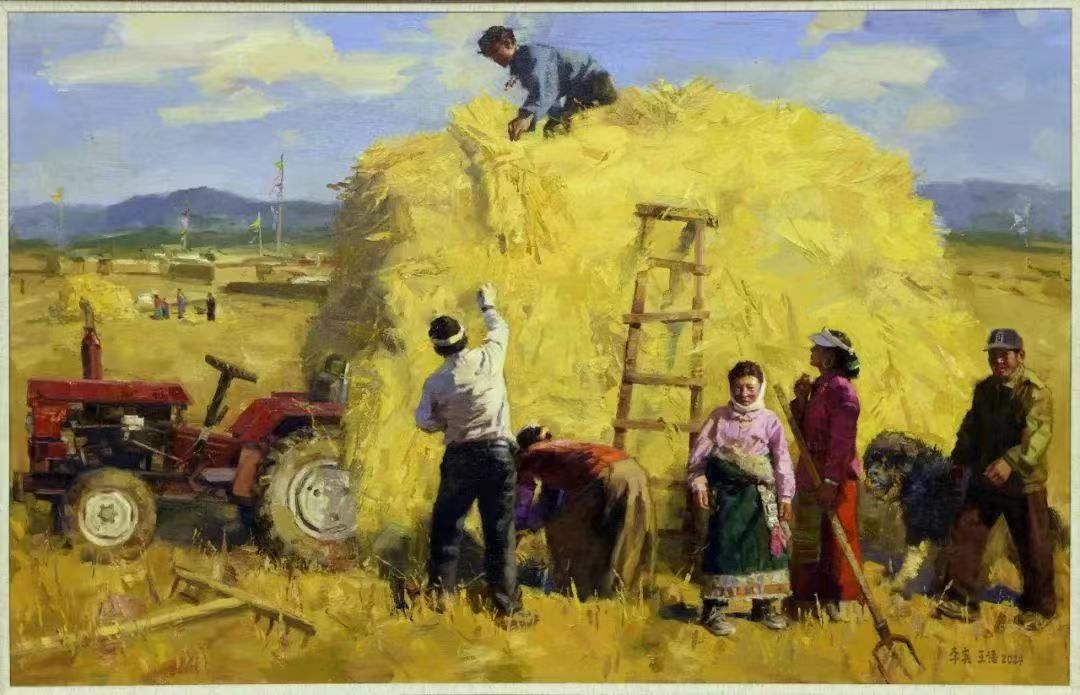 王语(研究生) 油画作品《收割场上说丰年》