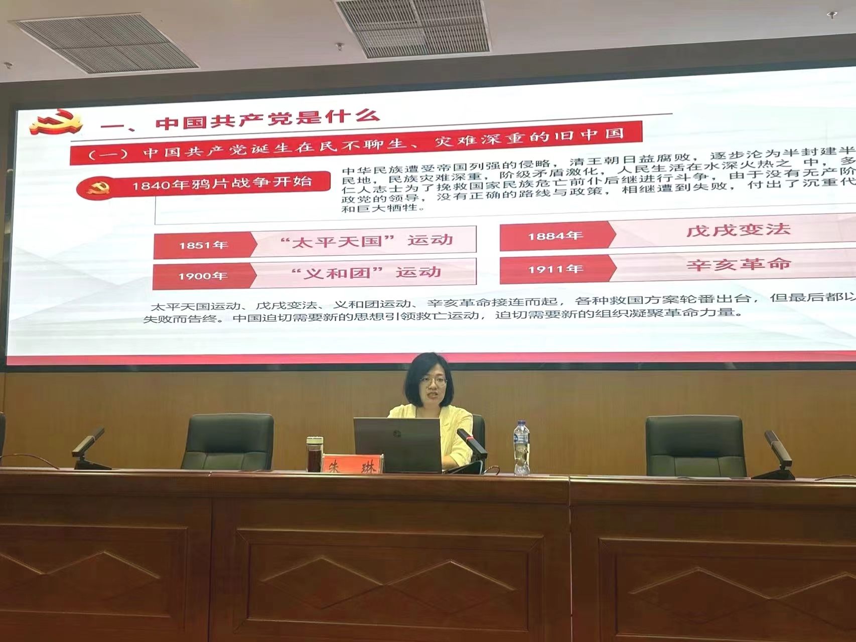朱琳以“中国共产党是什么,要干什么”为主题,结合专业特色,展示了《启航》《飞夺泸定桥》《长征》等红色经典美术作品,并例举了陈树湘、刘胡兰等革命烈士的英勇事迹,介绍了中国共产党的光辉历史和伟大成就。此外,还详细介绍了入党条件、流程和注意事项,对新生在入党、学习和生活等方面提出了明确要求。她强调新生要增强对党的全面认识,端正入党动机,做到立大志、明大德、成大才、担大任,肩负起历史使命。同时她也寄语2024级新生不仅要夯实文化基础,还要练就过硬专业本领,不仅要成为一名优秀的师大人,未来更要成为一名优秀的文艺工作者。