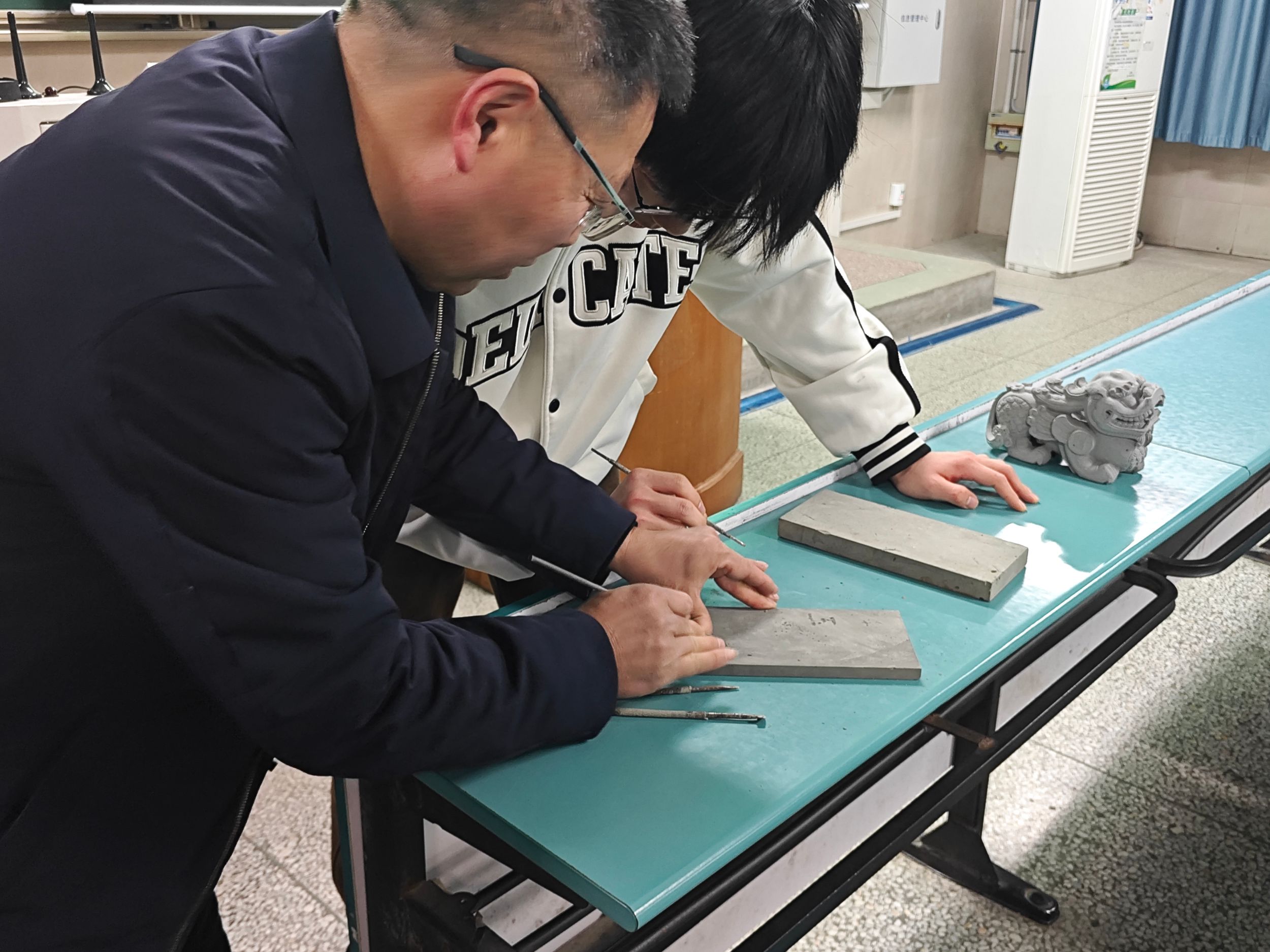 徽州三雕是指徽州古建筑中具有徽派风格的砖雕、石雕和木雕,以其精湛技艺、丰富题材和深远寓意,成为徽州文化的重要组成部分。课堂上,吴正辉深入浅出地介绍了徽州三雕的历史渊源、艺术特色及文化内涵。他结合自身多年创作经验,凭借生动语言与精美图片,引领同学们领略徽州三雕的独特艺术魅力。此外,还着重讲解了砖雕制作工艺,从选材、设计、雕刻到打磨,对每一个步骤都进行了详细介绍。课程尾声,吴正辉精心安排实践环节,让同学们亲身体验砖雕刻画过程。