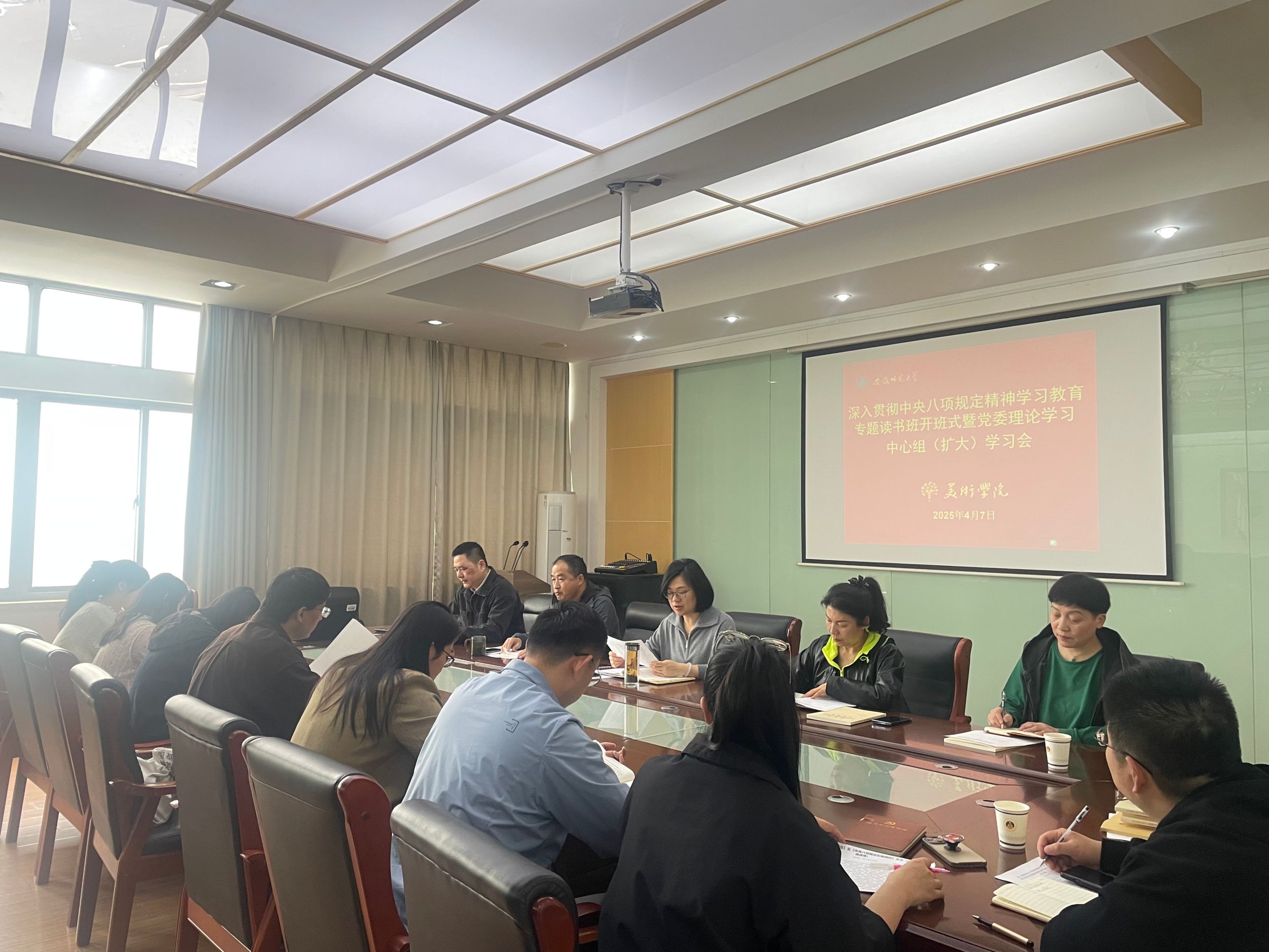 4月7日下午,437ccm必赢国际版党委举办深入贯彻中央八项规定精神学习教育专题读书班开班式暨党委理论学习中心组(扩大)学习会,学院党委委员、纪委委员、各党支部书记参加会议。会议由学院党委副书记(主持党委工作)、纪委书记朱琳主持。