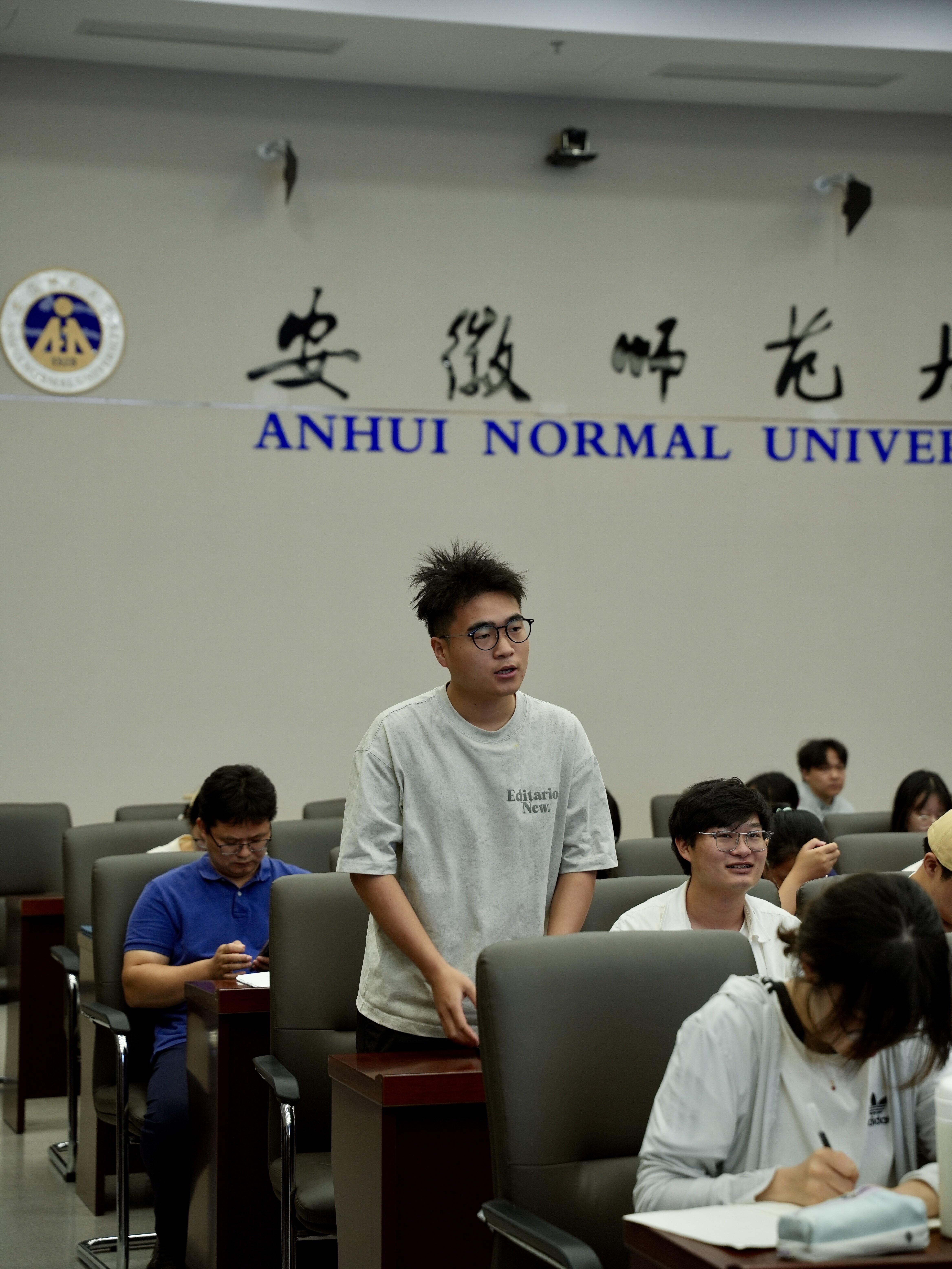 在讲座临近尾声的互动环节中,现场气氛愈发热烈。一位同学举手提问:“刘老师,您充满哲学思考的设计理念是在师大求学时期就已奠定基础,还是在之后的职业实践中逐步淬炼成型的?”刘正法用“笔墨当随时代”解答了同学的疑问,他认为创作应该跟着当下的脚步去进行,哲学思考并非一蹴而就,而是在持续创作实践中不断深化。同时他也表示师大开放包容的学术氛围让他在大学时期有了创作的哲学思考萌芽。这场讲座不仅让师生们领略了设计的艺术魅力,更让大家感受到了一位师大校友对母校的赤子情怀和对设计事业的执着追求。正如刘正法所说:“设计之道,既是技艺的锤炼,更是心灵的修行。”这场充满艺术哲思的分享,必将激励更多的师大学子在艺术道路上勇毅前行。