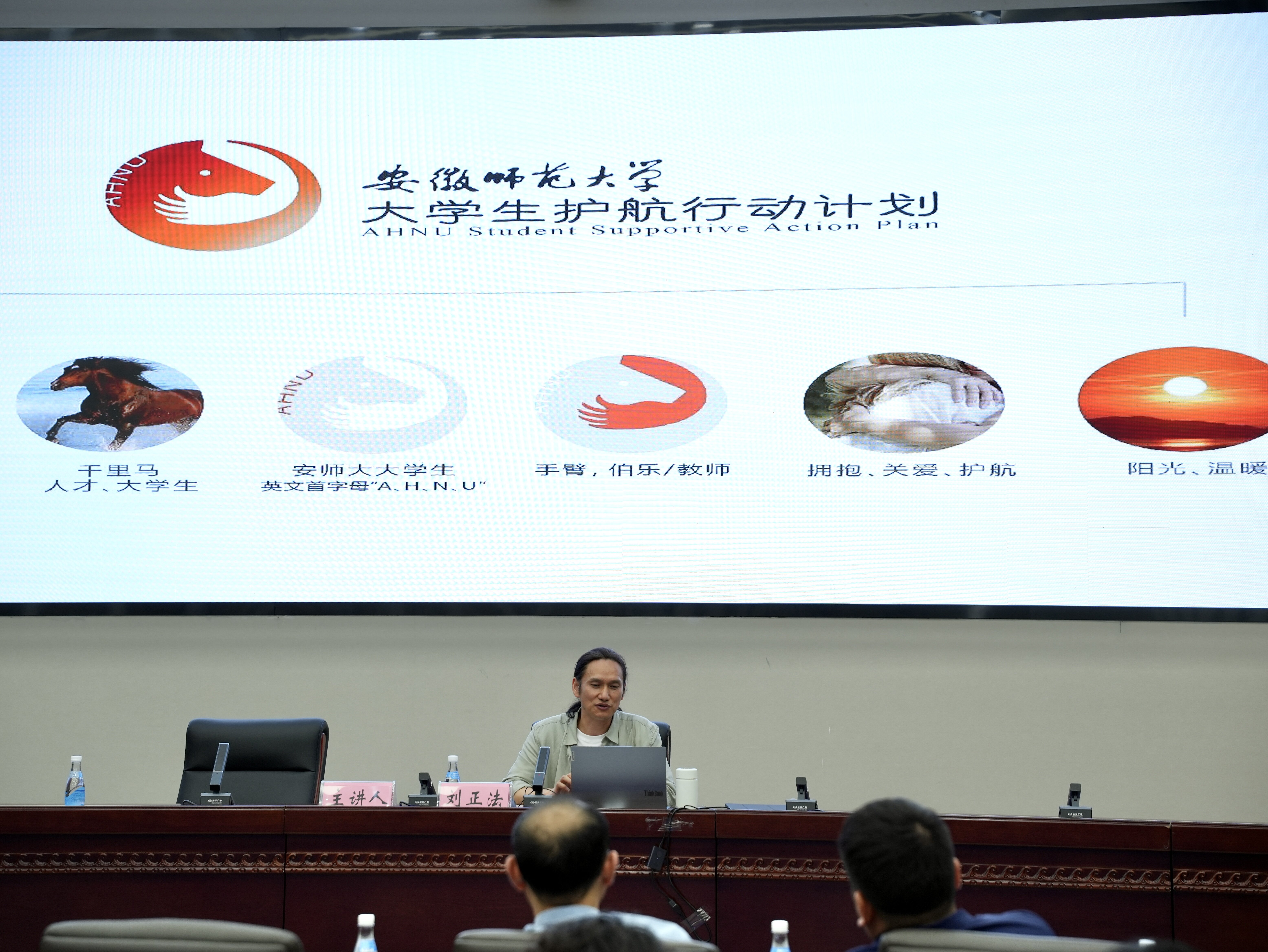 师大之缘:从追梦学子到反哺母校。刘正法展示出两张泛黄的荣誉证书,深情回忆了在师大的求学岁月。随后,他重点展示了为母校90周年校庆设计的视觉形象系列作品。该作品生动诠释了“聚是一团火,散是满天星”的设计初心,形象展现了师大学子在全球各地绽放光彩的美丽画卷。现场展示的不同版本的bwin必赢线路检测“大学生护航行动计划”标志,更是凝聚着他对母校的赤子之心。