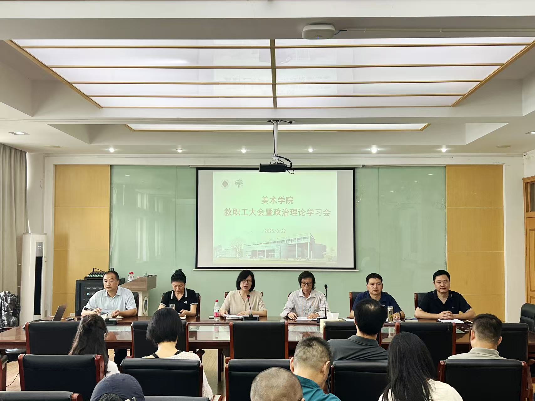院长尚可对学院上半年及暑期工作进行了全面总结,并对下半年工作做出精心部署。希望新学期要全力保障教学工作平稳运行,积极推进课程改革,提升教学质量;要努力增加产出,提高具有影响力的显示指标,充分发挥学院现有的两个科研平台的作用,推进徽派美术系列专著出版工作;要精准引进人才,满足薄弱专业需求,为人才的科研发展创造良好条件,助力打造重点学科;要搭建高规格的学术交流平台,举办新安画派全国学术研讨会,深入挖掘新安画派的艺术价值;举办全国青年版画作品展,积极开展合作办学;要严格执行开会和外出审批制度,确保资金合理规范使用。此外,还强调了年终考核工作的重要性,以及稳步推进博士点申报等工作。同时,各分管领导就新学期工作做了通报和提醒,重点就就业工作、新学期“三教落实”、研究生课程安排等做了部署。