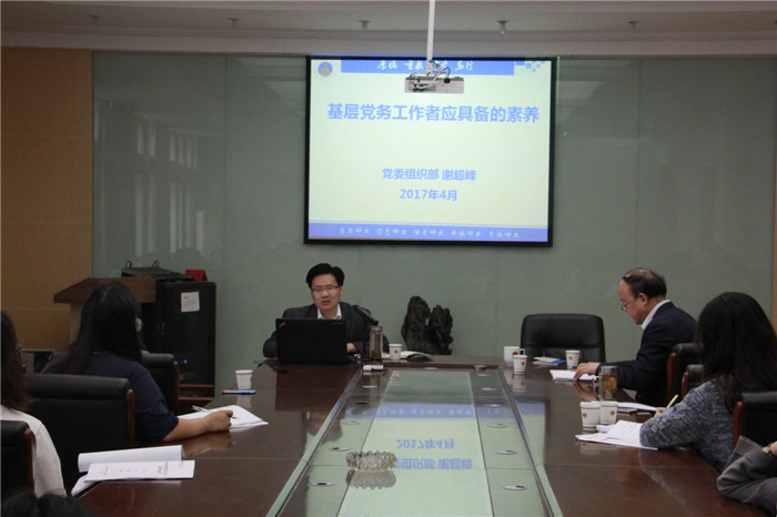 本网讯(437ccm必赢国际版 李高举4月20日下午,437ccm必赢国际版党务工作人员业务培训班开班仪式在437ccm必赢国际版会议室举行,校党委组织部副部长谢超峰受邀出席开班仪式,并为培训班学员作了题为《基层党务工作者应具备的素养》的专题讲座。437ccm必赢国际版党委委员、各党支部书记及支部委员、部分党员代表参加了此次培训班。开班仪式由437ccm必赢国际版党委副书记张韬主持。