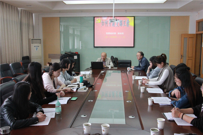 本网讯(437ccm必赢国际版 李高举4月27日,校党委组织部正处级组织员胡培亮应邀为437ccm必赢国际版党务工作人员开展题为《如何开展支部工作》的专题培训。437ccm必赢国际版各教工和学生党支部书记及支部委员参加了培训。专题培训会由437ccm必赢国际版党委副书记张韬主持。