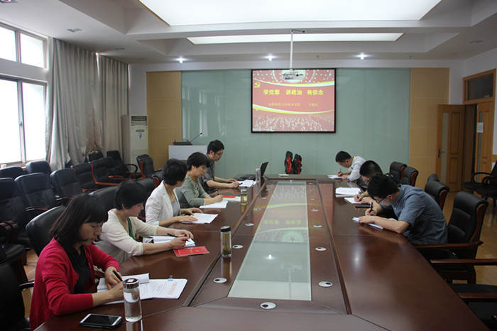 为认真贯彻学校“两学一做”文件精神,5月31日下午,437ccm必赢国际版行政党支部在学院会议室召开“两学一做”专题一讨论活动,学院行政党支部成员参加会议,会议由支部书记黄彦主持。 会上,黄彦老师结合学校文件精神传达了专题一讨论的相关内容,她希望全体支部成员能够结合个人学习活动参与到本次主题讨论中。随后学院党委书记王继民结合“两学一做”文件精神,开展了以“学党章,讲政治,有信念”为主题的专题讲座。他从党章的概述、十八大党章的基本内容和实践党章、做合格党员三个方面阐述了什么是党章、党章修改了哪些内容、怎样正确认识党的性质、做一名合格的党员。他希望党员同志能够坚持党员标准,增强为民服务观念,争做合格的共产党员。
