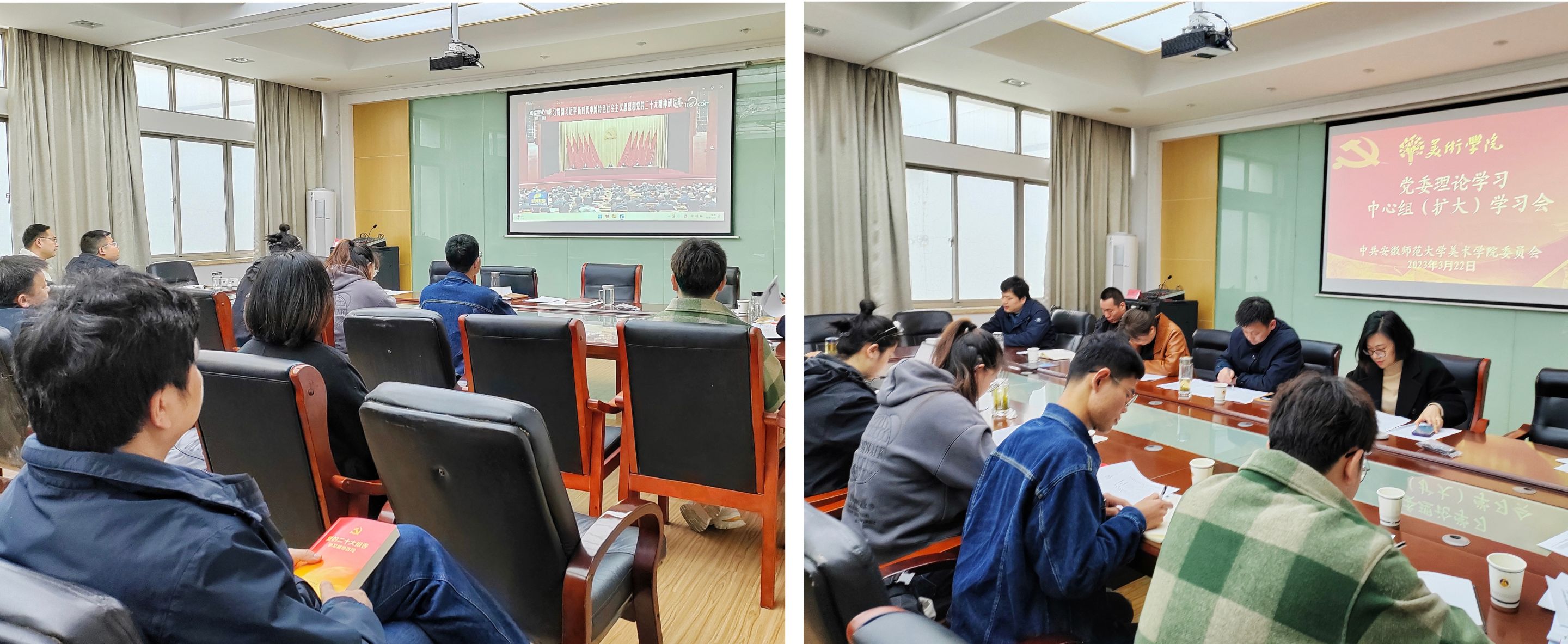 会上,参会人员围绕“牢牢把握以伟大自我革命引领伟大社会革命的重要要求”进行了专题研讨,结合工作实际谈学习体会。学院党委委员杜俊萍结合近些年教学工作尤其是《中国美术史》的教学谈到自我革命在各方面的体现,以及教师对学生专业学习、生活和工作等方面的重要引导作用。叶丹从“作风建设”“人生观”“组织生活”“政党建设”等四个方面解读了自我革命,强调要做到五个“面对”、五个“敢于”,面对大是大非敢于亮剑,面对困难矛盾敢于迎难而上,面对危机挑战敢于挺身而出,面对错误失误敢于承担责任,面对歪风邪气敢于革命斗争,主动担当作为,以自我革命引领社会革命,实现伟大目标。