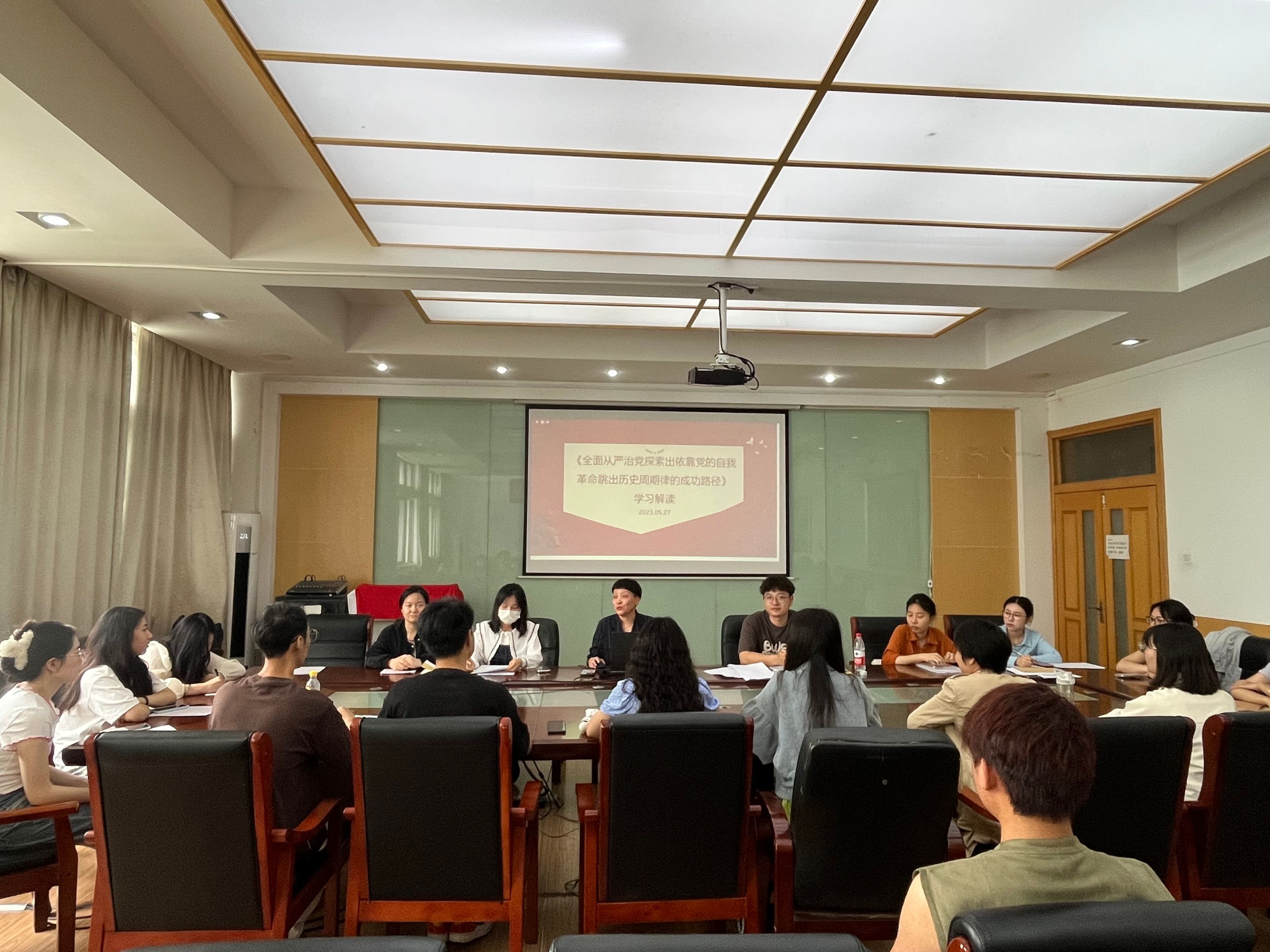 杜俊萍以《全面从严治党探索出依靠党的自我革命跳出历史周期率的成功路径》为主题,对党的十八大以来以习近平同志为核心的党中央全面从严治党所走过的历程和取得的令世人瞩目、人民拥护的反腐倡廉工作进行了回顾;从立足工作岗位、脚踏实地做事、发扬奉献精神、恪守清正廉洁等方面切入,就如何聚焦立德树人根本任务,持续加强党风廉政建设、队伍建设和纪律作风等工作,为支部全体党员讲授了一堂生动、深刻的党课。她强调,打铁先需自身硬,作为新时代的学生党员,在日常工作生活中,应加强自身建设,坚守政治纪律、政治规矩,在工作学习中守初心、担使命、作表率。同时,教育引导学生党员要不忘初心、守正创新、勇于自我革命、勇于担当、积极作为,遵纪守法、清正廉洁,坚持不懈用习近平新时代中国特色社会主义思想武装头脑、指导实践、推动工作。