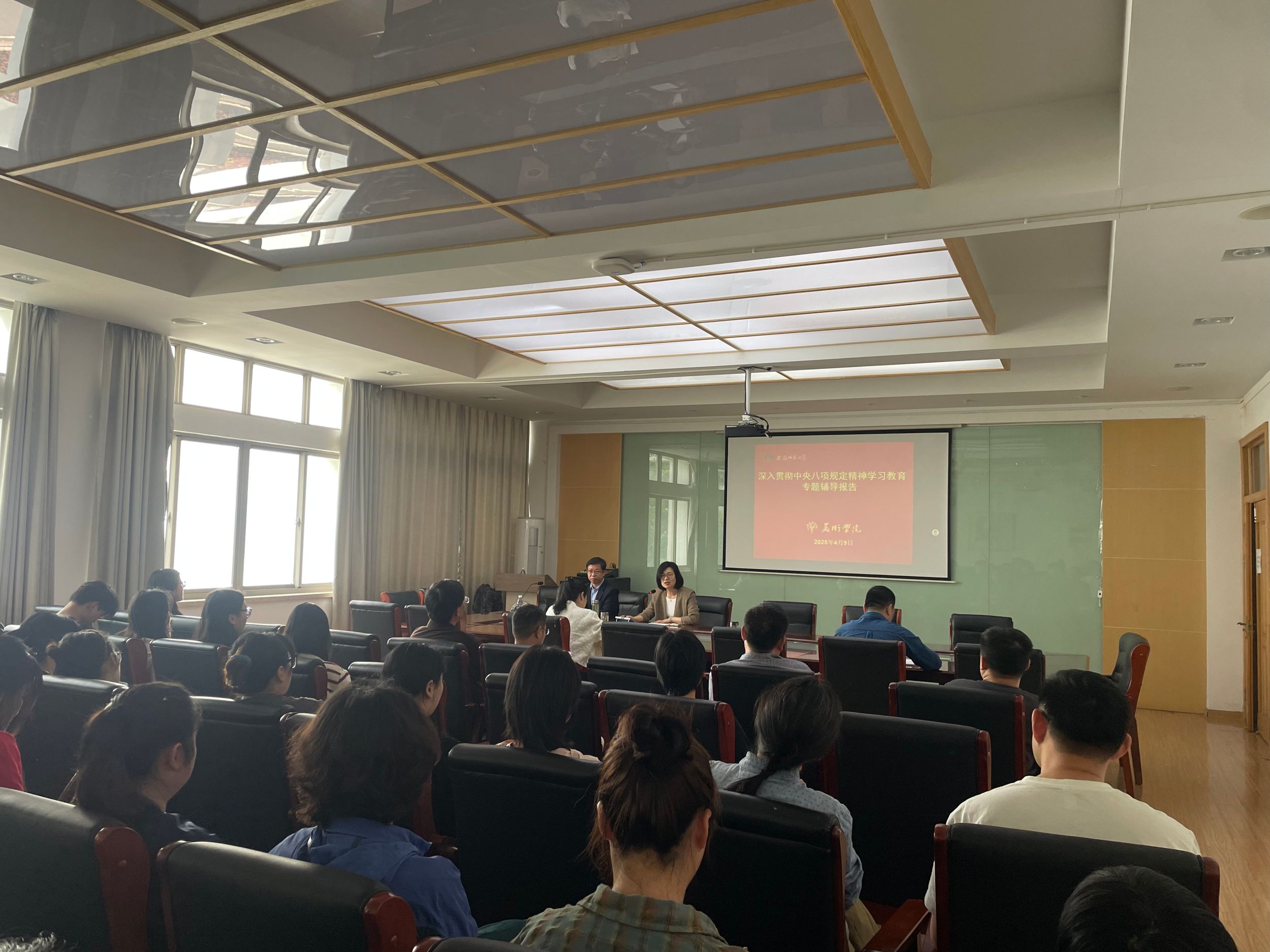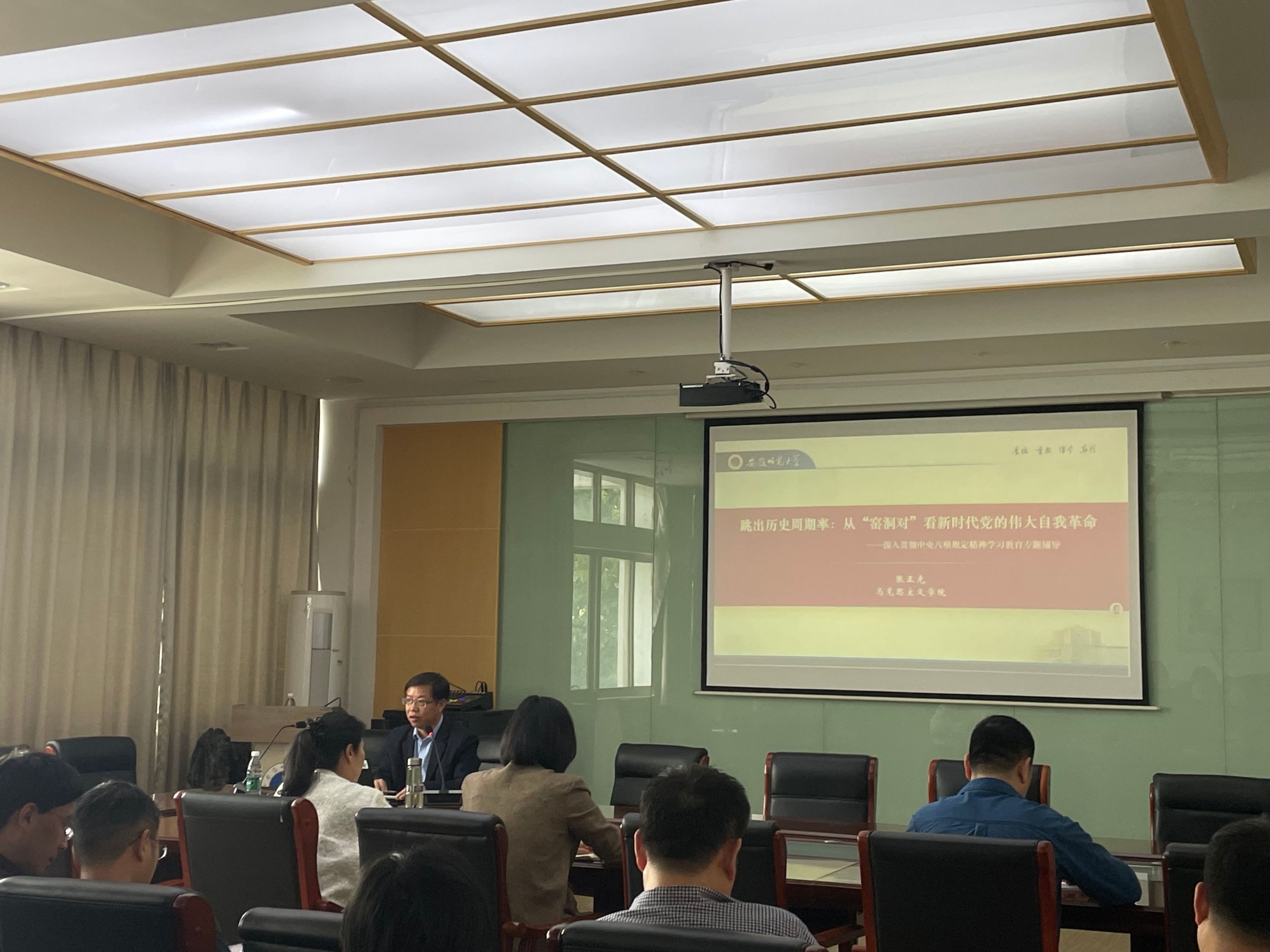 4月9日下午,437ccm必赢国际版举办深入贯彻中央八项规定精神学习教育专题读书班第二期学习会,马克思主义学院张正光教授受邀作专题辅导报告,报告会由学院党委副书记(主持党委工作)、纪委书记朱琳主持。学院领导班子成员、全体教职工党员以及各党支部书记、支委、部分学生党员代表参加了报告会。