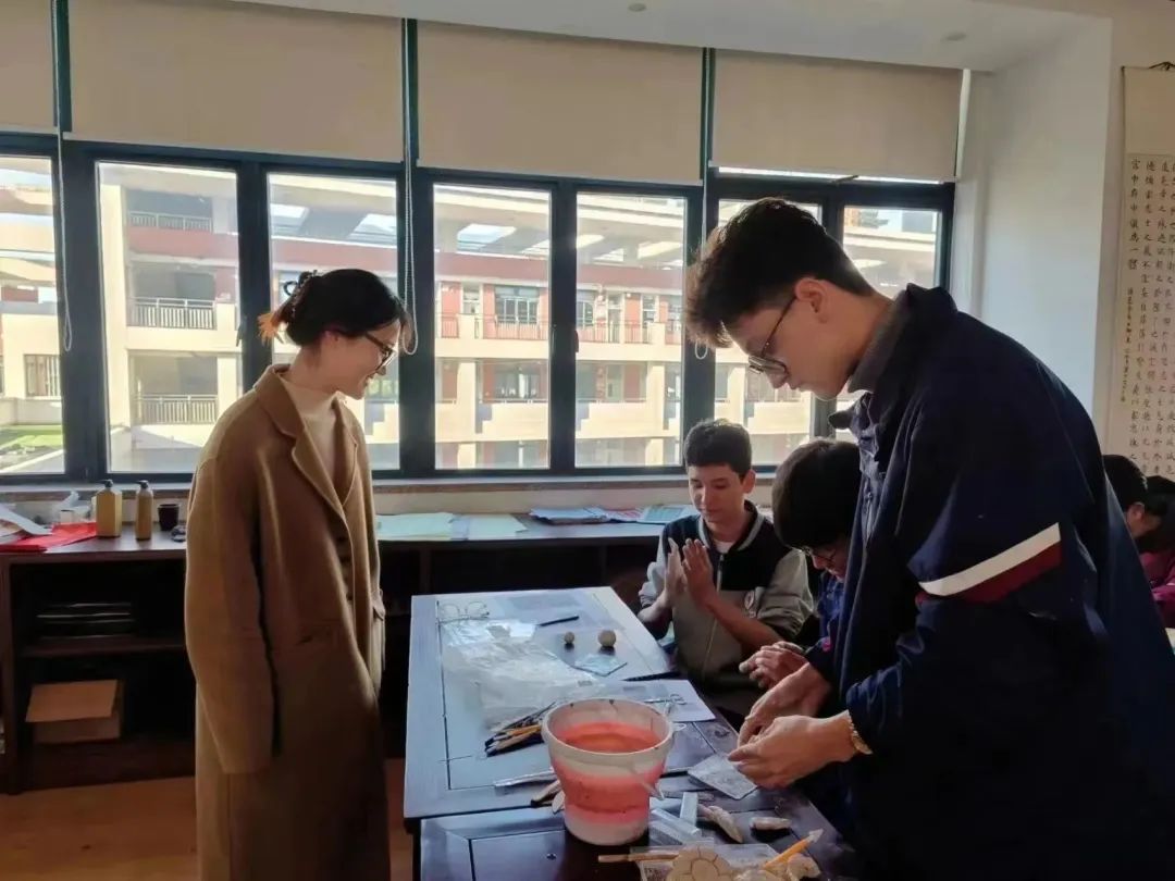 下午1点,8名实习生在奉贤中学美术教室开展教育实习成果汇报,曙光中学薛子旎老师主持下午会议。8名实习生按照实习学校4人一组分为两组,分别从单元课程开发、单元教学设计、单元课堂教学三个方面进行汇报,大家围绕课堂教学、大单元学习手册交流以及校本课程开发设计展开了热烈的交流。汇报后,张昕怡同学进行了一节高一年级的《锡山泥人》展示课。