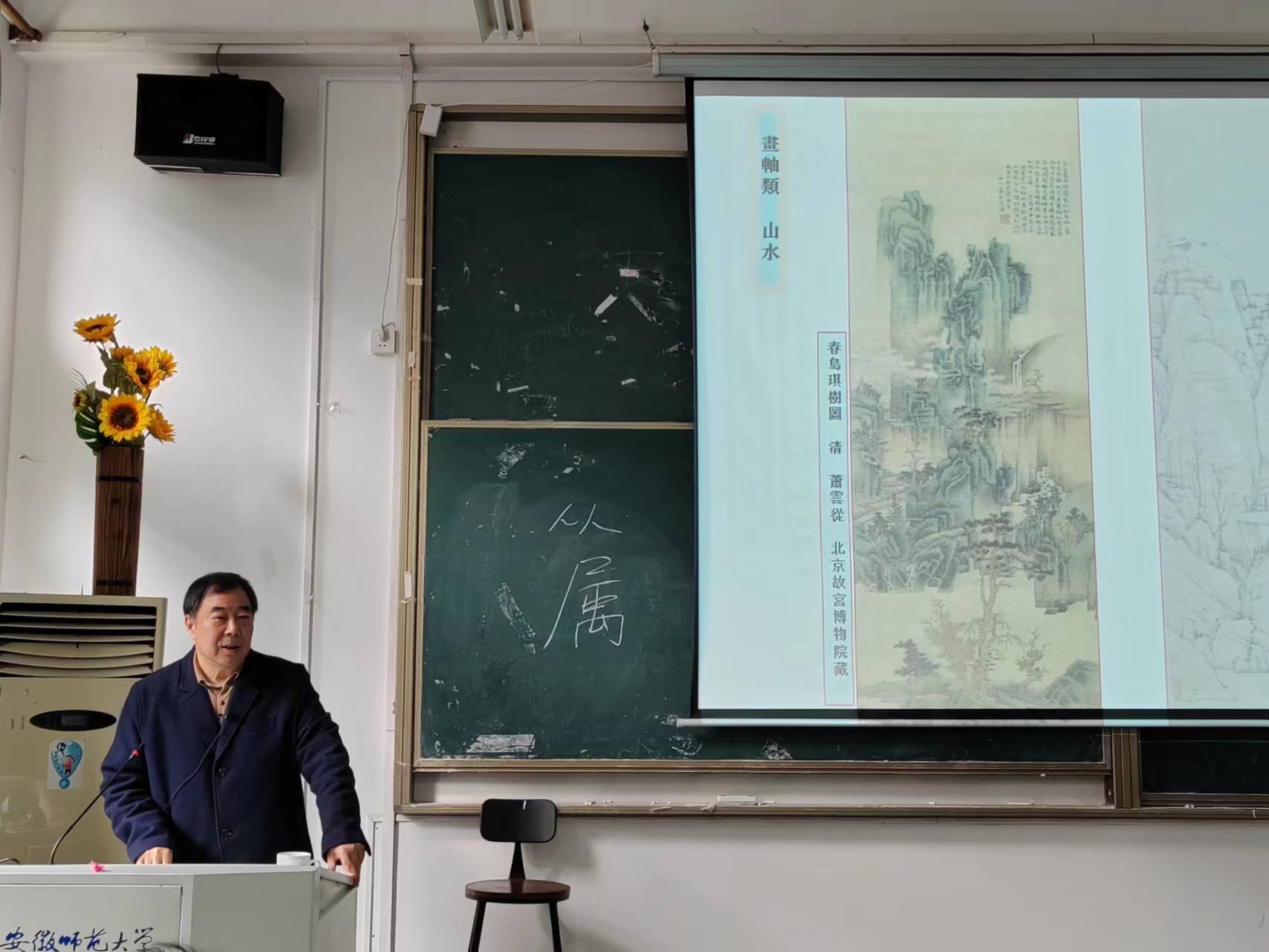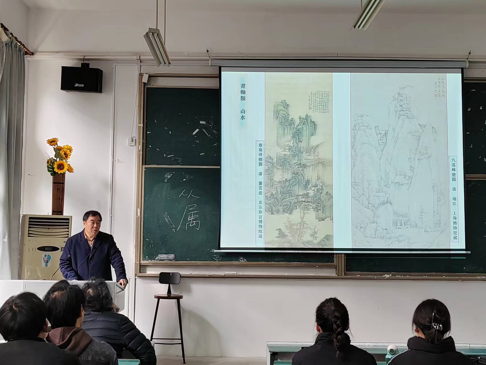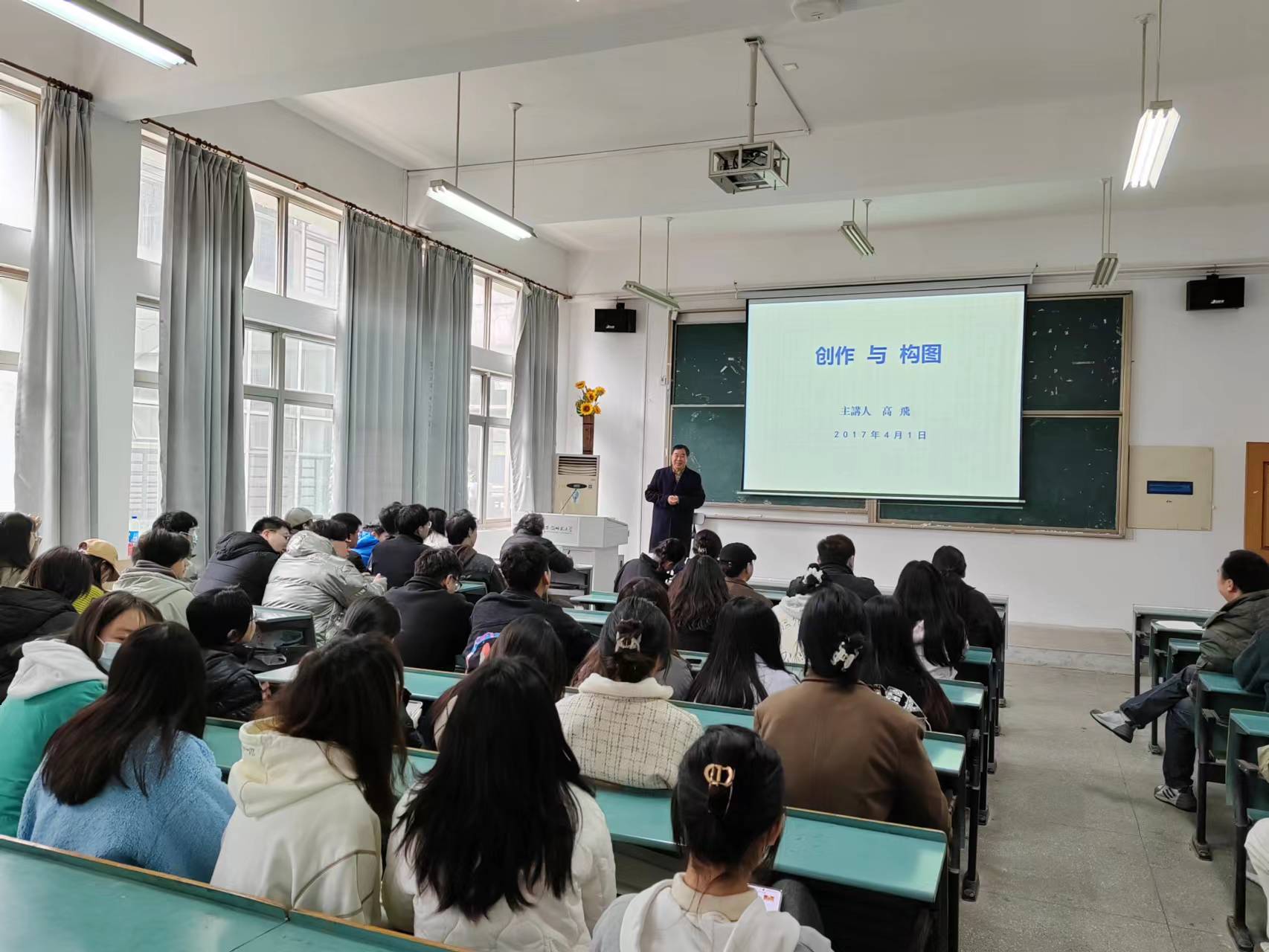 2023年3月20日于437ccm必赢国际版A107教室,高飞教授为437ccm必赢国际版师生讲授了《创作与构图》一课。此次课程共分为三部分,分别为中西方绘画比较、绘画题材的选取以及一九四九年后多阶段的中国油画。高教授在讲解抽象的知识用实际的例子做解释,学生无不受益匪浅。