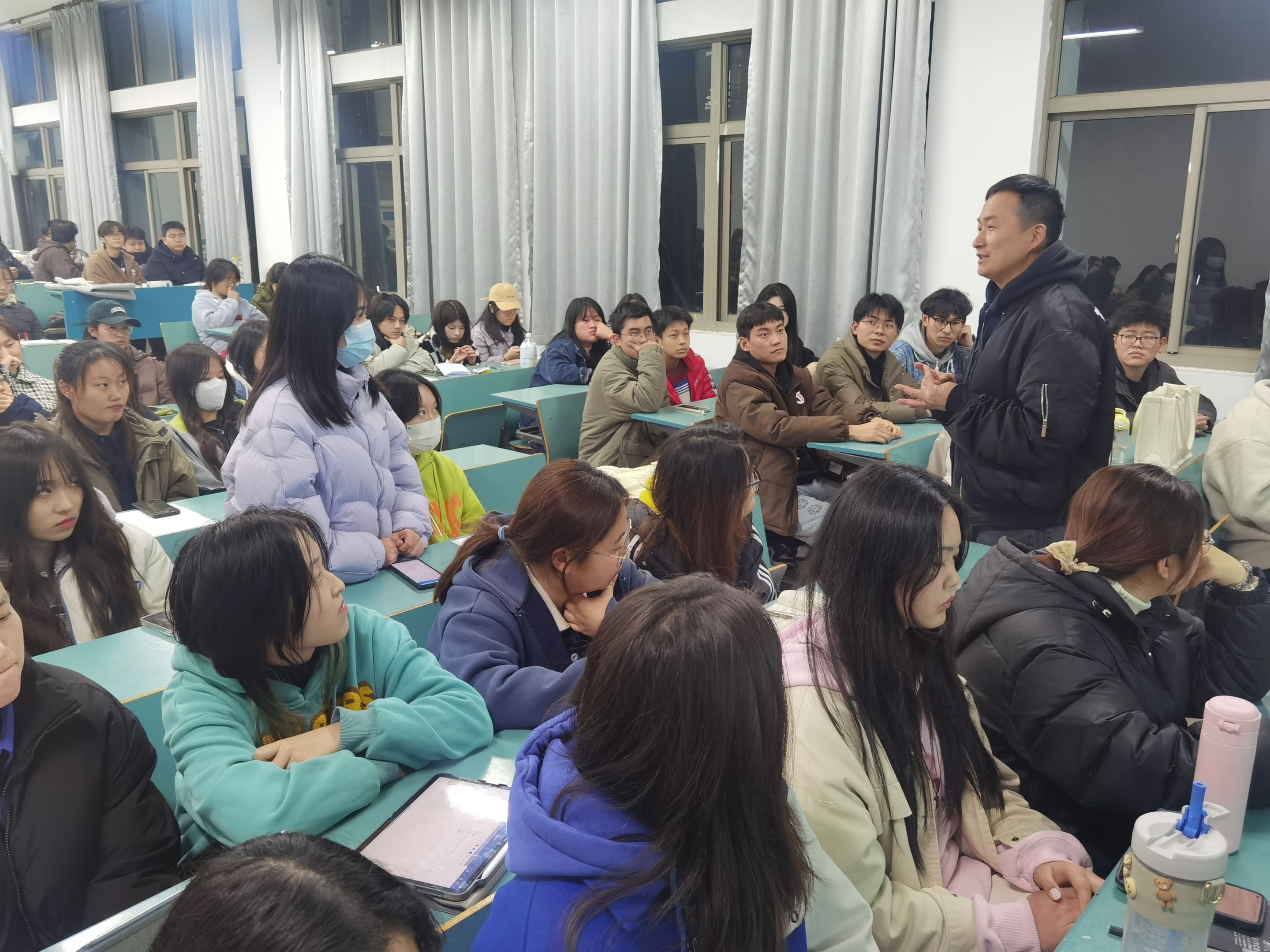 讲座中,张春辉老师分别从王国维的三重境界、观摩与听课、说课与试讲、讲课、课程开发、反思与研究六个维度提出自己的见解与看法,分享了自己丰富的教学与教研经验,并在讲座中通过亲身示范为我们展现了如何真正走进中学生、做到以学生为本。重点分析了一名实习教师应该具备的基本能力与素养,同时强调“作为未来的美术教师,需要时刻关注艺术的最新发展方向,我们的美术教育不仅要立足于传统,更要适应当代以及未来的发展。”讲座后,是互动交流环节,同学们就非遗课程资源的开发、对大概念的理解以及艺术与科技的融合等问题与老师进行了深入的交流。