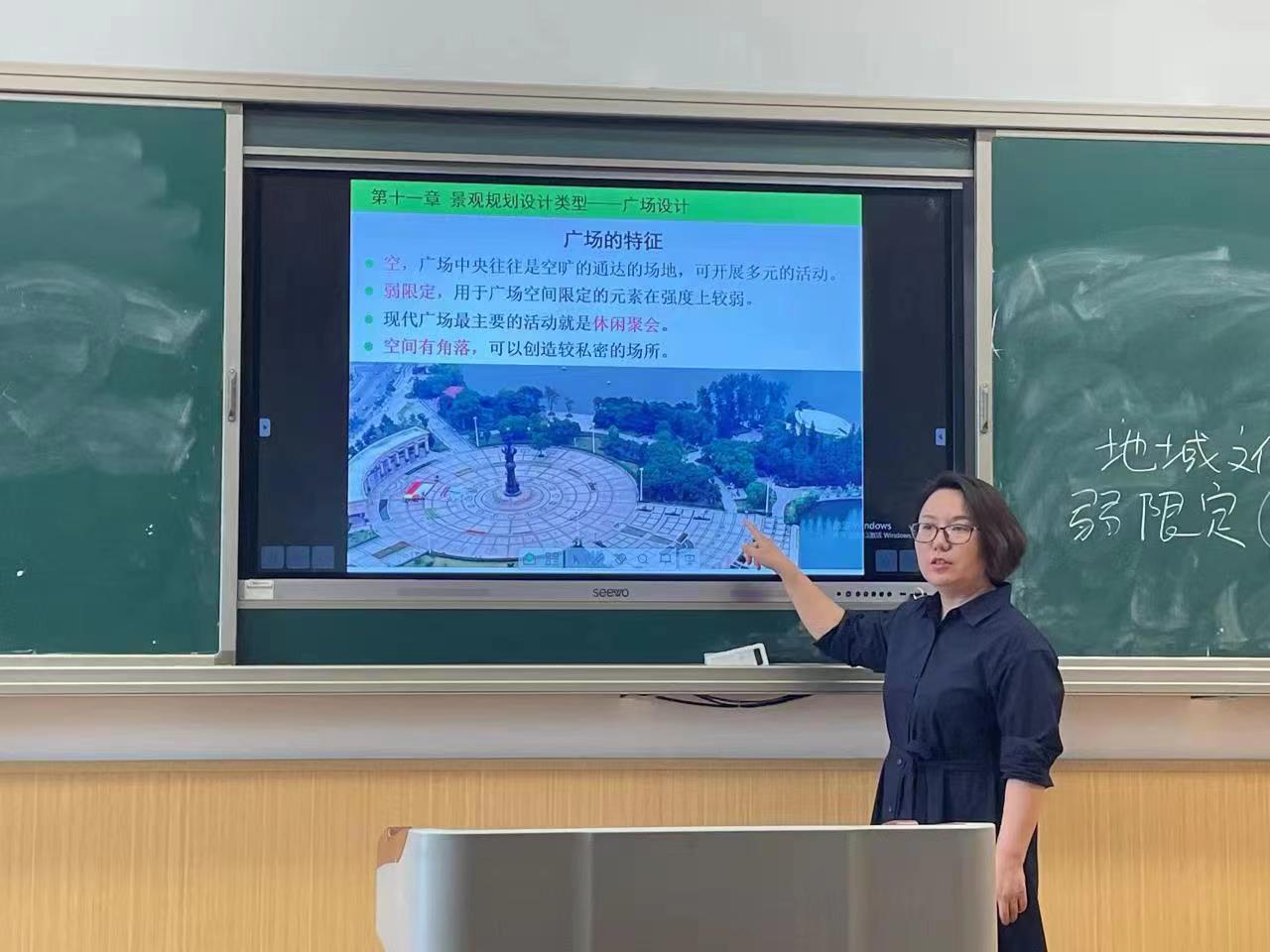 本次课程内容为景观设计中广场的特征,王老师以芜湖市具有代表性的鸠兹广场为案例,结合学生日常生活中对于广场的实际感受和印象进行讲解,启发学生运用课程所学内容和自身的专业知识,从设计学、心理学、社会需求等角度去分析案例,从而内化成自己的专业能力。