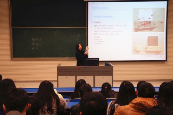 本次观摩课的教学内容是“纸质书的逆袭——书籍的整体形态要素设计”。钱昀老师首先从电子阅读器对纸质书的冲击导入课题,提出要从书籍整体形态设计角度进行纸质书的逆袭,并列出两份书单:2015年“中国最美的书” 获奖图书,以及“世界最美的书”中国获奖图书。随后钱昀老师以获奖图书为经典案例详细解析“书籍的整体形态要素设计”并现场展示部分获奖图书,通过实物展示与理论讲授相结合,深入讲解了书籍外部形态和内部形态的基本要素及设计原则、设计方法,使学生了解掌握书籍设计常用规律及特殊案例,要求学生在进行整体书籍形态要素设计时,一定要与书籍内容及风格相吻合。课程最后提出纸质书籍设计还应该构建综合文化空间,引发学生思考。整节课准备充分、内容详实、讲解清晰、语言流畅,把前瞻性的设计理念渗透到专业知识传授的课堂之中。