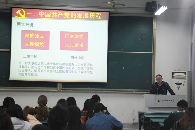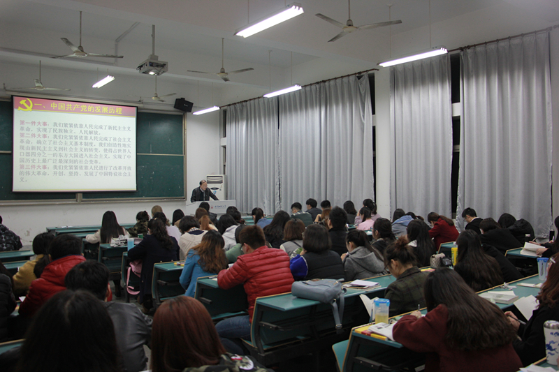11月21日晚,437ccm必赢国际版分党校第53期入党积极分子培训班在学院A103教室举行了第五次授课,院党委副书记张韬为本期培训班学员讲授了《从党的发展看“三个自信”》,分党校班主任盛贤和学员认真聆听了张书记的讲课。