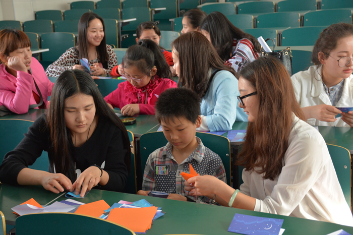 4月16日下午,分党校学员来到聋哑学校开展义务支教,今天的主题是教聋哑学校的小朋友做折纸。通过拼、剪、折、组合等形式,党校学员和小朋友们一起制作出一件件精美、有创意的作品,孩子们在玩耍中自然愉快地学习,锻炼了手脑的协调能力,促进了智力发育,增强了日常的环保意识。活动结束后,学员们纷纷表示这次经历让他们了解当今特殊教育的现状,也体会到支教工作的不易。希望以后能够更多的为这里的孩子送去关怀,为中国的执教事业作出贡献。