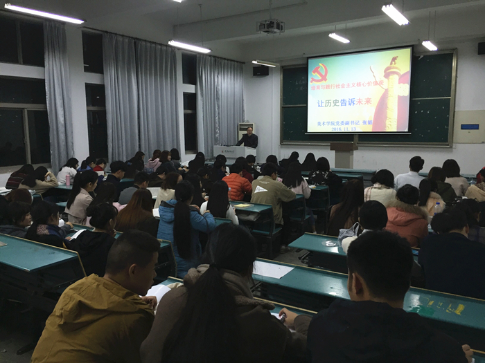 11月13日晚,437ccm必赢国际版分党校第54期入党积极分子培训班在学院A103教室举行了第四次授课,院党委副书记张韬为本期培训班学员讲授了《培育和践行社会主义核心价值观—让历史告诉未来》,分党校班主任盛贤和学员认真聆听了张书记的讲课。