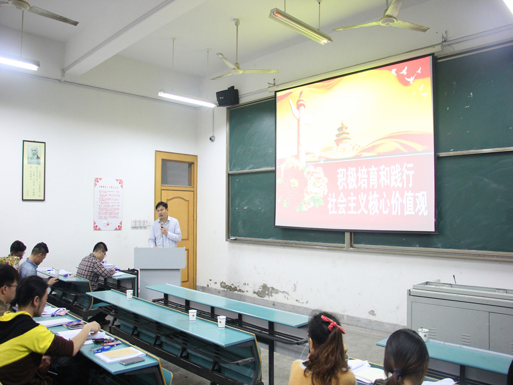 首先,王刚书记从发展的角度向大家介绍了社会主义核心价值观理论的产生历程,包括从党的第十六届六中全会首次提出到党的十七大的明确指出,再到十八大的最终确立。随后,王书记为学员详细地解释了社会主义核心价值观二十四个字的具体概念。“富强、民主、文明、和谐”体现了中国特色社会主义的价值目标,是立足国家层面概括出的社会主义核心价值观;“自由、平等、公正、法治”体现了中国特色社会主义的基本社会属性,是立足社会层面概括出的社会主义核心价值观;“爱国、敬业、诚信、友善”体现了社会主义国家公民的基本价值追求和道德准则要求,是立足公民层面概括出的社会主义核心价值观。然后,王书记从中国的国情出发,结合具体实例,指出培育和践行社会主义核心价值观有利于丰富和发展马克思主义价值和道德理论,能为我们更加有效地应对西方错误价值观的冲击提供了强大理论武器,促进国家主流价值观的形成,凝聚全国人民的思想共识。讲解过程既严肃认真,又生动活泼。最后,王刚书记提出了几点要求与希望:一是要加强理想信念教育,强化党员自律意识;二是要加强党性修养,永葆党性纯洁,主动为人民服务;三是要充分发挥模范带头作用,敢于责任和担当,乐于奉献社会。