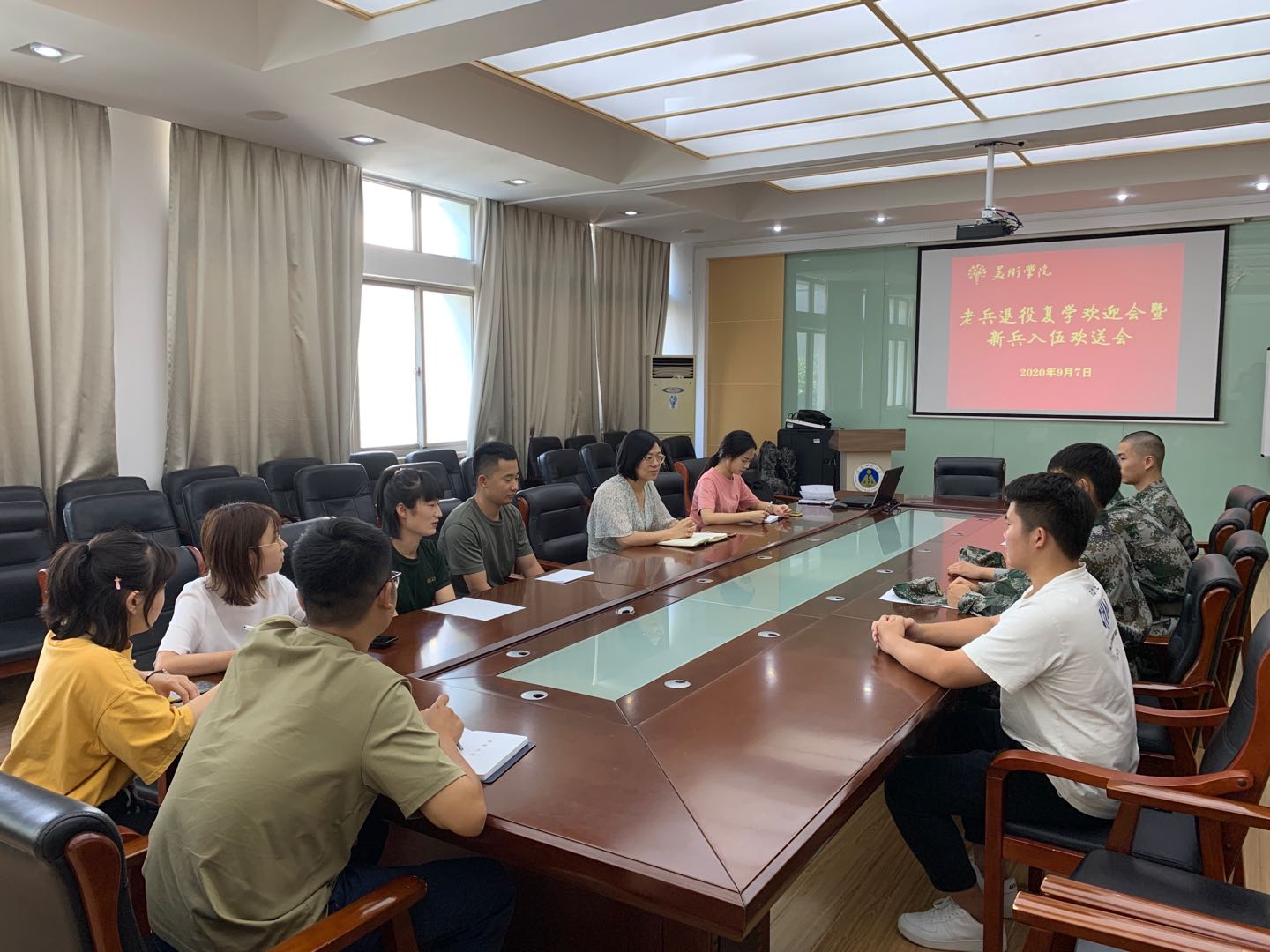 本网讯(437ccm必赢国际版 文/章紫玥 图/盛贤)9月7日下午,437ccm必赢国际版举办了2020年退役老兵复学欢迎会暨新兵入伍欢送会。学院党委副书记朱琳、全体本科生辅导员、4名在校应征入伍大学生以及2名退伍复学学生参加了会议。会议由朱琳主持。