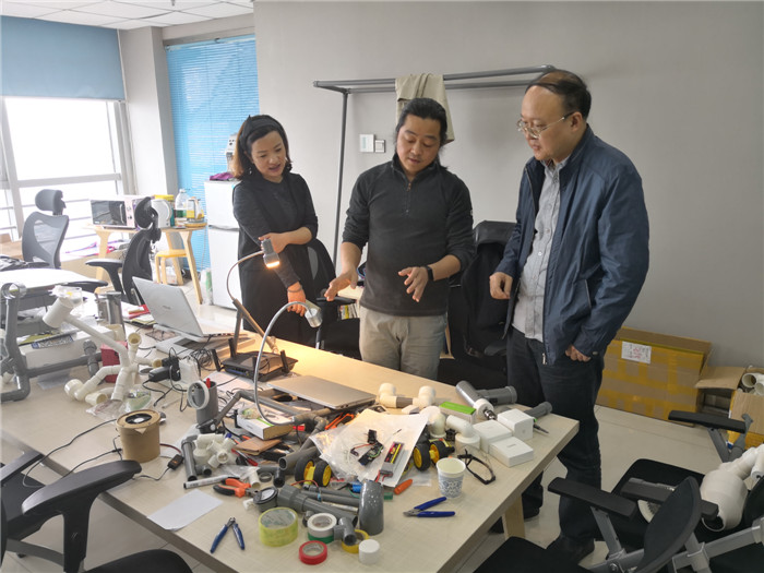 在合肥山水装饰集团招副总裁裴智松现场向学院师生代表介绍了合肥山水装饰集团的发展历程、山水装饰的子品牌和未来的发展规划。在裴智松的带领下,同学们参观了装饰展示空间、企业绘图部和设计师工作室。现场,同学们就关心的企业发展前景、晋升空间和实习期限、薪资待遇做了进一步沟通和交流。