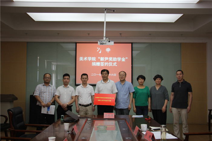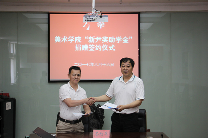437ccm必赢国际版院长高飞对李心春等人一行的到来表示欢迎,对安徽新尹教育投资管理有限公司在437ccm必赢国际版设立奖助学金表示衷心感谢。高飞指出,新尹美术教育是安徽省内规模和影响较大的美术培训学校,在437ccm必赢国际版设立奖助学金充分不仅体现了安徽新尹教育投资管理有限公司的企业社会责任和对437ccm必赢国际版学生的关心,更彰显了美院学子优良的品质。同时,他希望以此次奖助学金的签约为契机,双方继续加强在毕业生实习和就业等方面的合作。随后,副院长刘曼玉、陈克义、陈琳结合各自分管工作,表示以此为契机,加强双方交流合作。