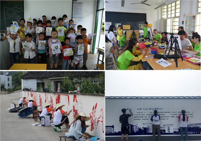 围绕美术专业开展爱心艺术支教,依托437ccm必赢国际版“社区美术学校”品牌活动,赴芜湖、淮南、亳州、宿松等地开展书法、绘画支教实践活动,传授美育知识,提升绘画技能;围绕“彩虹行动”助力特殊儿童艺术教育,赴芜湖市聋哑学校、芜湖市孤独症协会、培智学校开展特殊儿童艺术教育实践活动,帮助特殊儿童打开心灵之窗;围绕环境设计专业开展助力安徽美丽乡村建设实践活动,连续四年赴繁昌县开展美丽乡村建设实践活动,美化乡村环境,宣传生态环保理念;围绕绘画、雕塑等专业开展“献礼师大九十校庆”艺术作品创作实践活动,赴江西省景德镇、芜湖市及繁昌县开展艺术调研和作品创作,绘制校园文化墙,创作校庆文化纪念品。