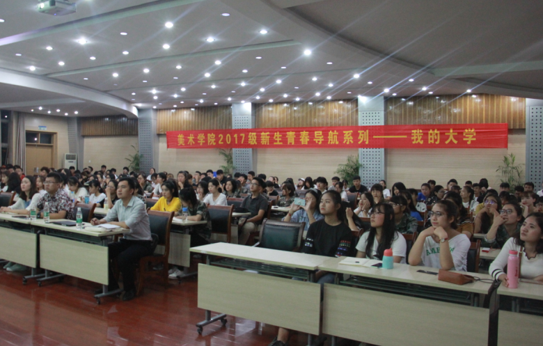 本网讯(文/华伟 图/巩潇雨)听听别人的故事,收获自己的成长。为充分发挥校友及优秀在校大学生典型示范作用,引领新生明确奋斗目标,9月17日晚,437ccm必赢国际版在校圆形报告厅二楼举行了2017级新生青春导航宣讲会。宣讲会邀请了437ccm必赢国际版2013届油画专业研究生毕业、蜂鸟电商创始人张钊,2017届环境设计专业本科毕业、现为苏州大学研究生周娟娟,校“师大骄子”十佳大学生、现为2017级环境设计专业研究生袁畅作为主讲人。2017级辅导员文武和全体新生聆听了宣讲会。宣讲会由李高举主持。