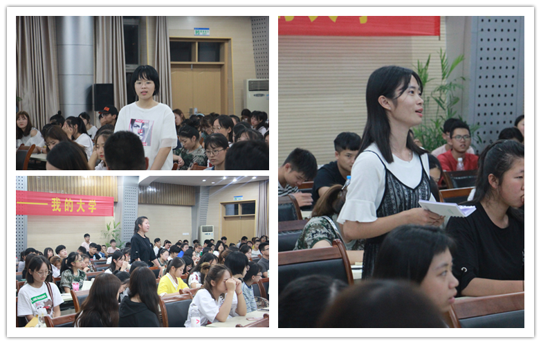 首先,张钊讲述了自己的大学经历,分享了自己学生工作及创业的过程,勉励新生要树立目标,勇敢追逐自己梦想;周娟娟从自己农村出身讲起,从专业到辅修,分享了自己大学学习的过程,劝勉新生在大学期间应多读书,谨记专业学习是立身之本,要用刻苦努力来丰富自我;袁畅结合丰富的个人经历图片,讲述了自己在大学四年及支教一年的成长之路,鼓励新生要“永远年轻,永远热泪眼眶”。