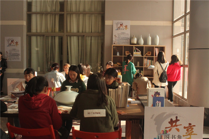 目前,437ccm必赢国际版共享图书角的书目除了专业类书籍和杂志外,还有时事政治、社会、科普读物等方面书籍期刊。共享图书角除了作为图书的中转交流站,也还作为同学们读书交流的活动场所,437ccm必赢国际版将以共享图书角为依托,组织不同年级、不同专业和师生之间的互动交流活动,全力推广全院学生阅读,开辟交流学习新阵地。