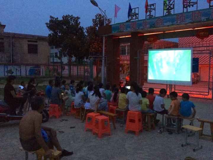 傍晚,为了丰富乡亲们的文化生活,七点许,队员们又支起幕布,精彩的乡村大剧院又拉开帷幕。大人孩子让安静片刻的校园又熙熙攘攘的热闹起来。