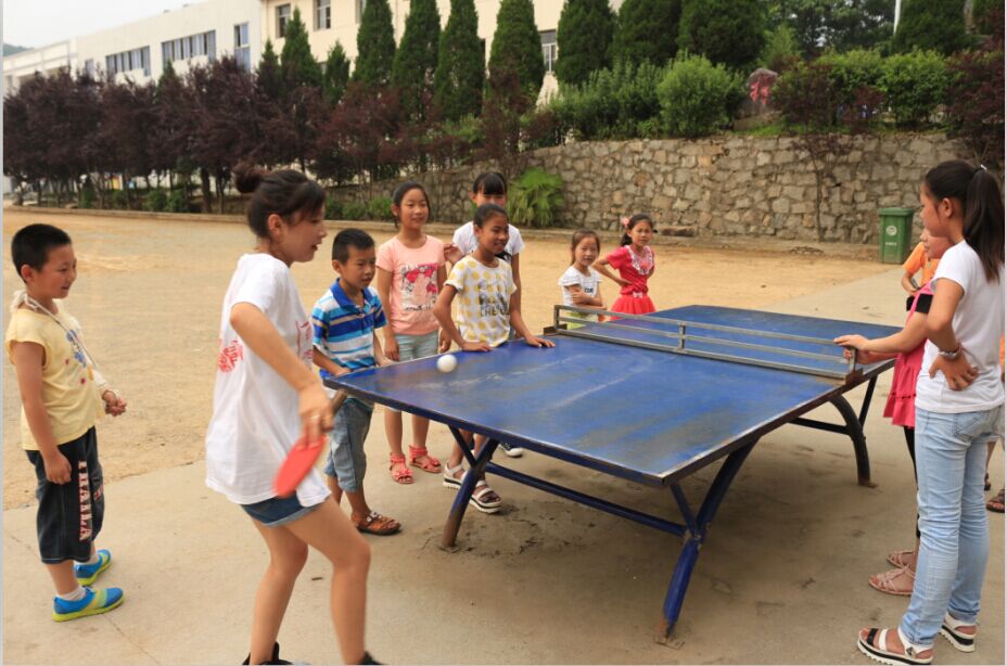 上午天气阴云但却十分爽朗,队员们给孩子们上了丰富多彩的室外素质拓展课。孩子们来到了操场,一些热爱乒乓球的孩子早已围在乒乓球桌边;另一部分孩子在老师的带领下玩起了传统的丢手绢游戏,你追我赶;还有一部分孩子簇拥着老师折起了小星星。和孩子们游戏,队友们感受着童年,童趣回忆无限。