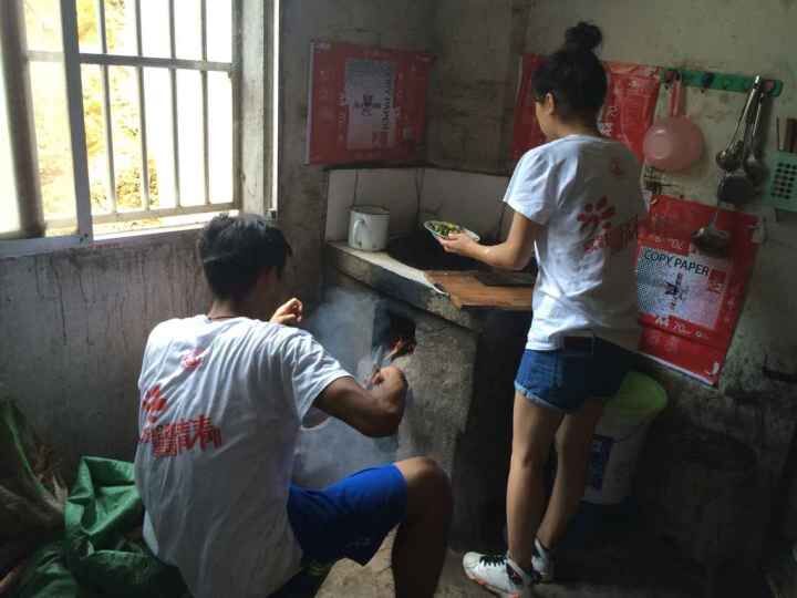 上午课程结束,为了展示自己的手艺,队员们决定自己动手,为团队做一餐饭。买菜回来后,烧起了最原始的土锅灶,队员们各展所长,有的烧柴火,有的配菜,有的掌勺,近2个多小时的努力,虽然都是素菜,有的手艺还很粗糙,但自己做菜的浓浓幸福不减。