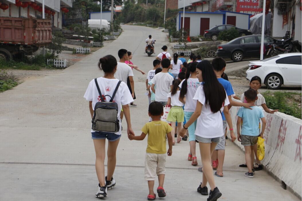和孩子们在一起的时光总是美好而短暂,一天的课程很快就结束了。放学的时候,队员们将孩子分成两队,首位看护,把孩子一一护送回家,听到接孩子家长们给予的认可,我们感到深深地慰藉。