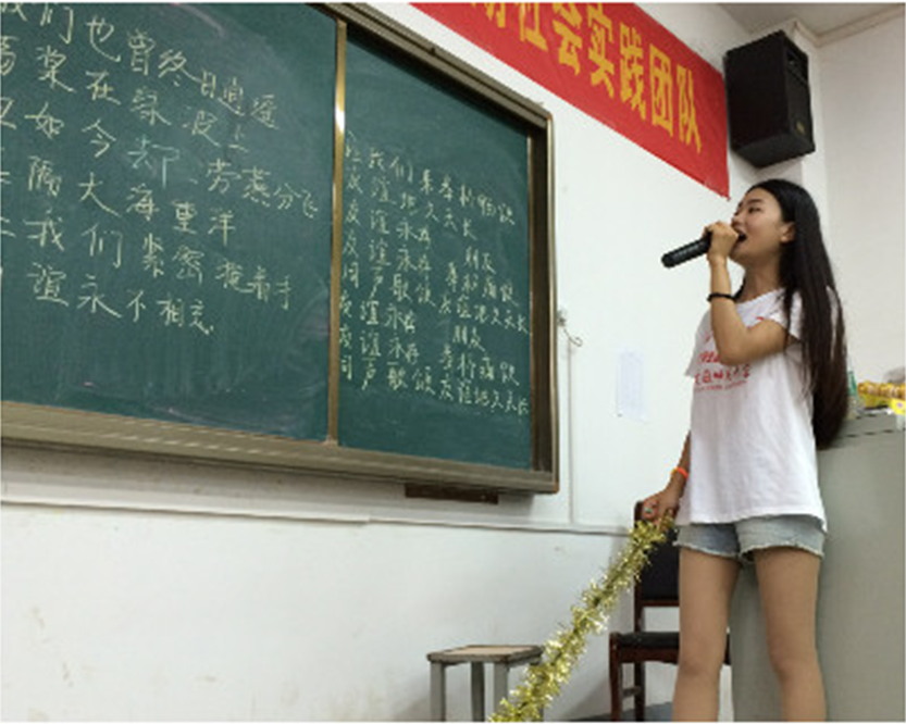 午后下起了大雨,我们本以为来上课的孩子会有所减少,但这些可爱的小朋友不到上课时间就纷纷赶来了,更是突破了100人。下午的课程是音乐教学,小羽老师带领孩子们唱《友谊地久天长》,一字一句,一遍一遍,孩子们声色悦耳又非常聪慧,顿时,校园里回荡清澈的童声合唱,恍如天籁。