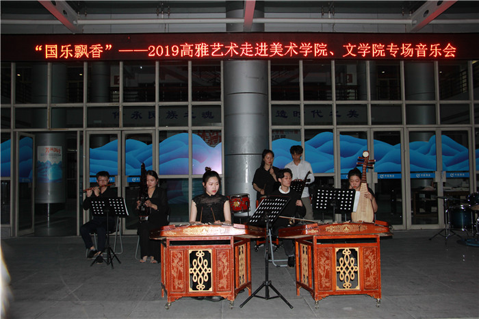 5月23日,音乐学院“国乐飘香”——高雅艺术进学院专场音乐会走进437ccm必赢国际版,437ccm必赢国际版与文学院300余名师生共同观看了本次演出活动。本次专场音乐会由音乐学院、437ccm必赢国际版、文学院团委联合举办,437ccm必赢国际版学生代表合奏《风居住的街道》与在场学生进行了交流演出。本次演出在民乐合奏《好汉歌》中落下帷幕,与会学生享受了一场经典的国乐盛宴。