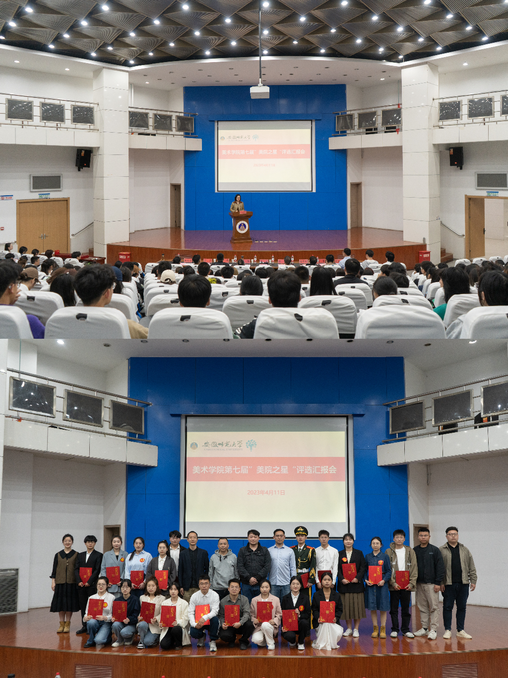 汇报结束,评选小组综合汇报人的申请事迹材料、实际表现和现场汇报情况进行了打分,最终评选出第七届“美院之星”标兵2名,“美院之星”10名。