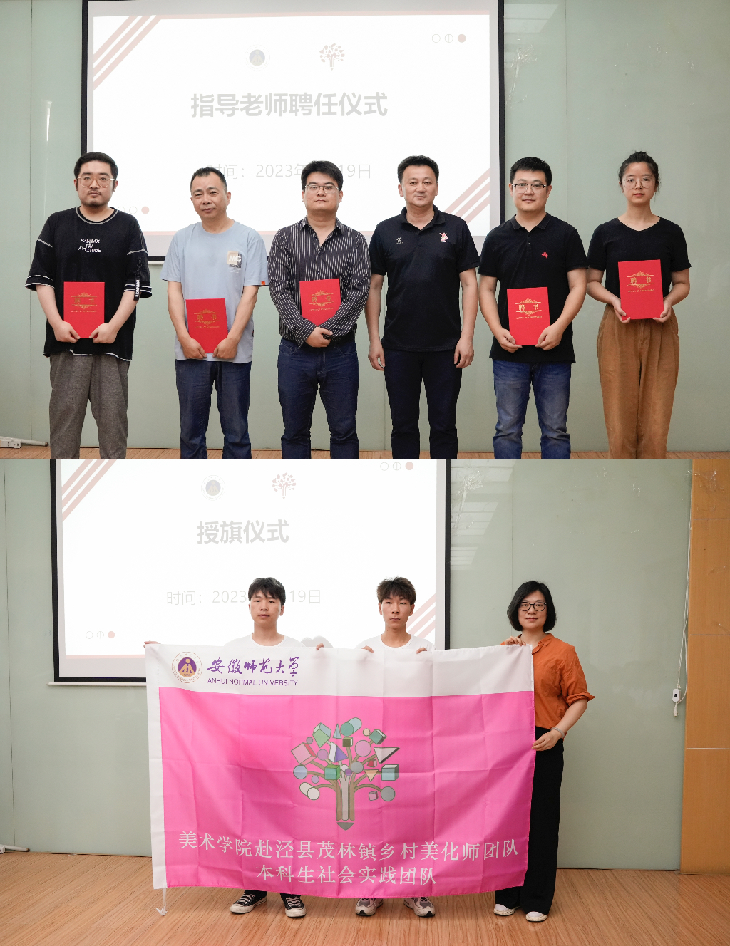 会上,叶丹为暑期社会实践指导教师颁发聘书,朱琳为研究生、本科生重点团队授旗。