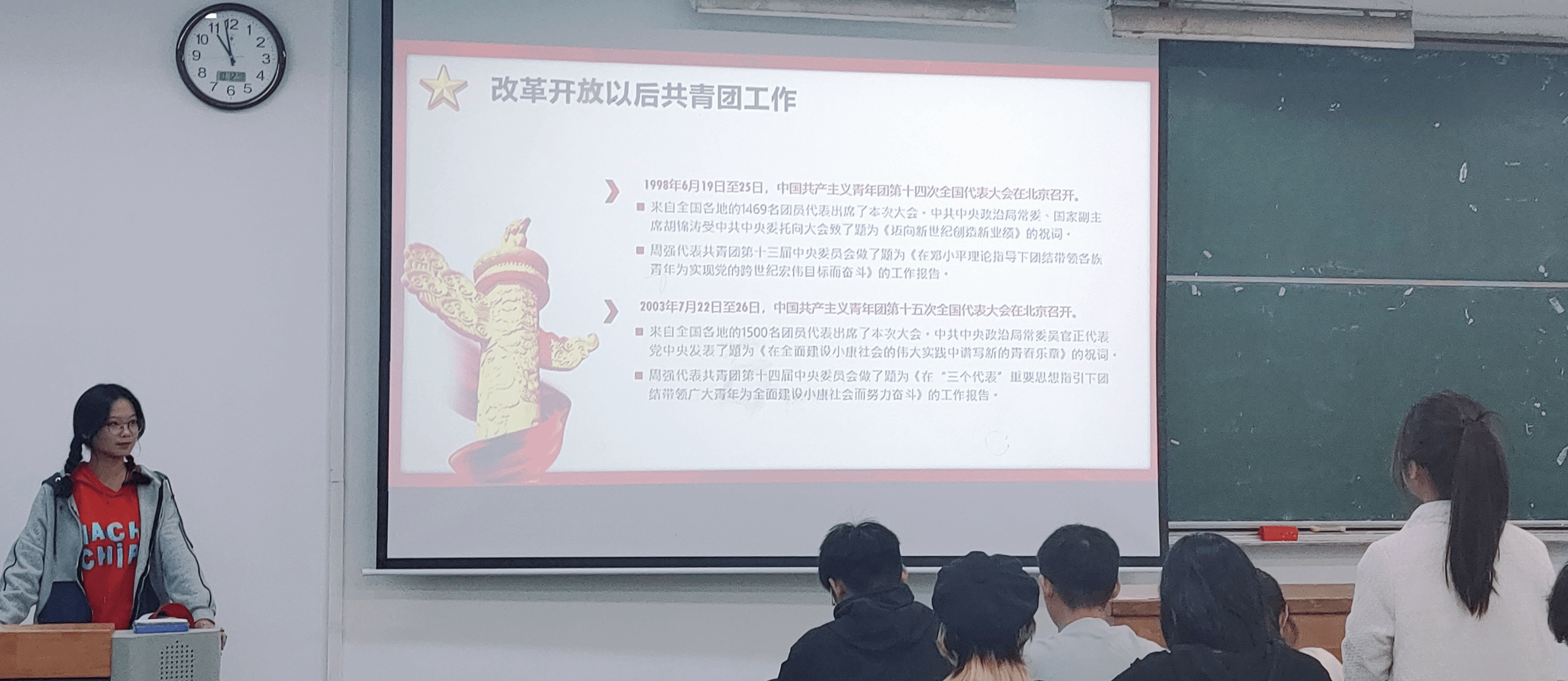坚定理想信念,熟知团史团情。支部以“学习新思想,做好接班人”为主题,紧密围绕共青团基本知识、新时代青年使命和如何做新时代青年大学生等方面进行学习,帮助团员了解共青团的发展历程,团员管理的相关规定和团员发展细则,研读《中国共产主义青年团发展团员工作细则》,提高新生团员对团组织的认识,进⼀步增强团员青年的使命感、荣誉感和对组织的归属感。