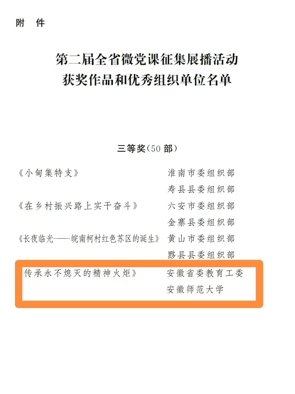 为深入学习宣传贯彻习近平新时代中国特色社会主义思想和党的二十大精神,持续深化“党课开讲啦”活动,省委组织部组织开展了第二届全省微党课征集展播活动。由安徽省委教育工委、bwin必赢线路检测选送,437ccm必赢国际版专职辅导员、本科生第二党支部书记王伟同志讲授的党课作品《传承永不熄灭的精神火炬》,荣获三等奖并作为优秀作品进行展播。