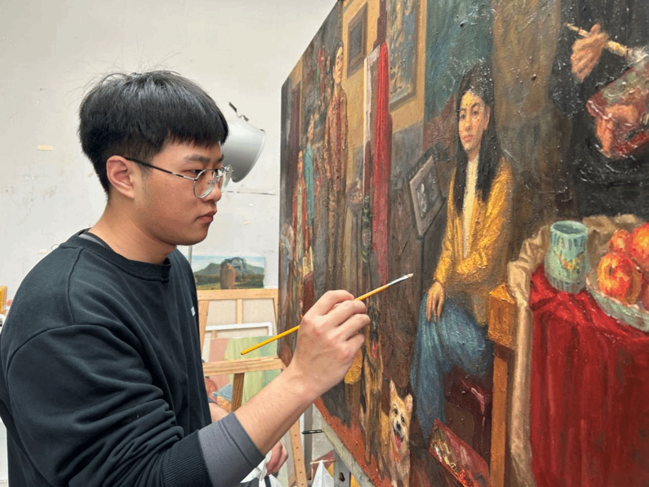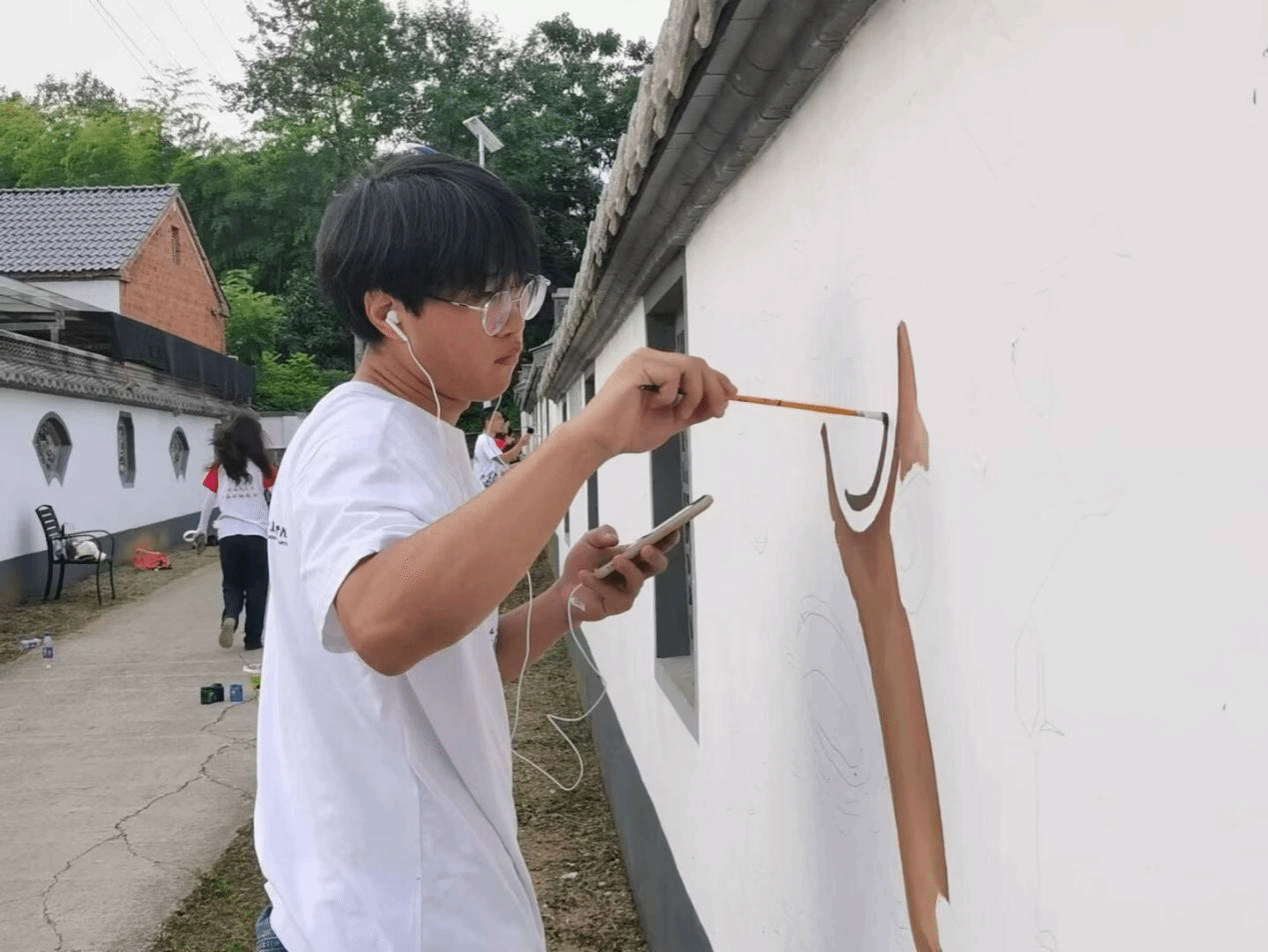 知识如果不付诸行动,就如同没有翅膀的鸟。他认为必须要始终保持学习的热情和实践的勇气,不断将新知识转化为解决问题的实际能力。通过不断的学习和应用,可以持续提升自己。在校期间,他多次参加暑期社会实践活动和各类志愿服务活动,将所学知识学以致用,为社会建设贡献自己的一份力量。他热衷学习新知识,不仅限于书本上的理论,更注重将所学应用到实践中去。他将专业知识投入到“美育聚梦课堂”艺术支教和“乡村美化师”墙体彩绘的实践中。孩童们开心的笑容,乡村中漂亮的墙绘,都是他动力的源泉。在“为烈士画像”系列公益活动中其被评为优秀志愿者,他根据家属的描述,为没有留下照片的烈士重现记忆中的模样。