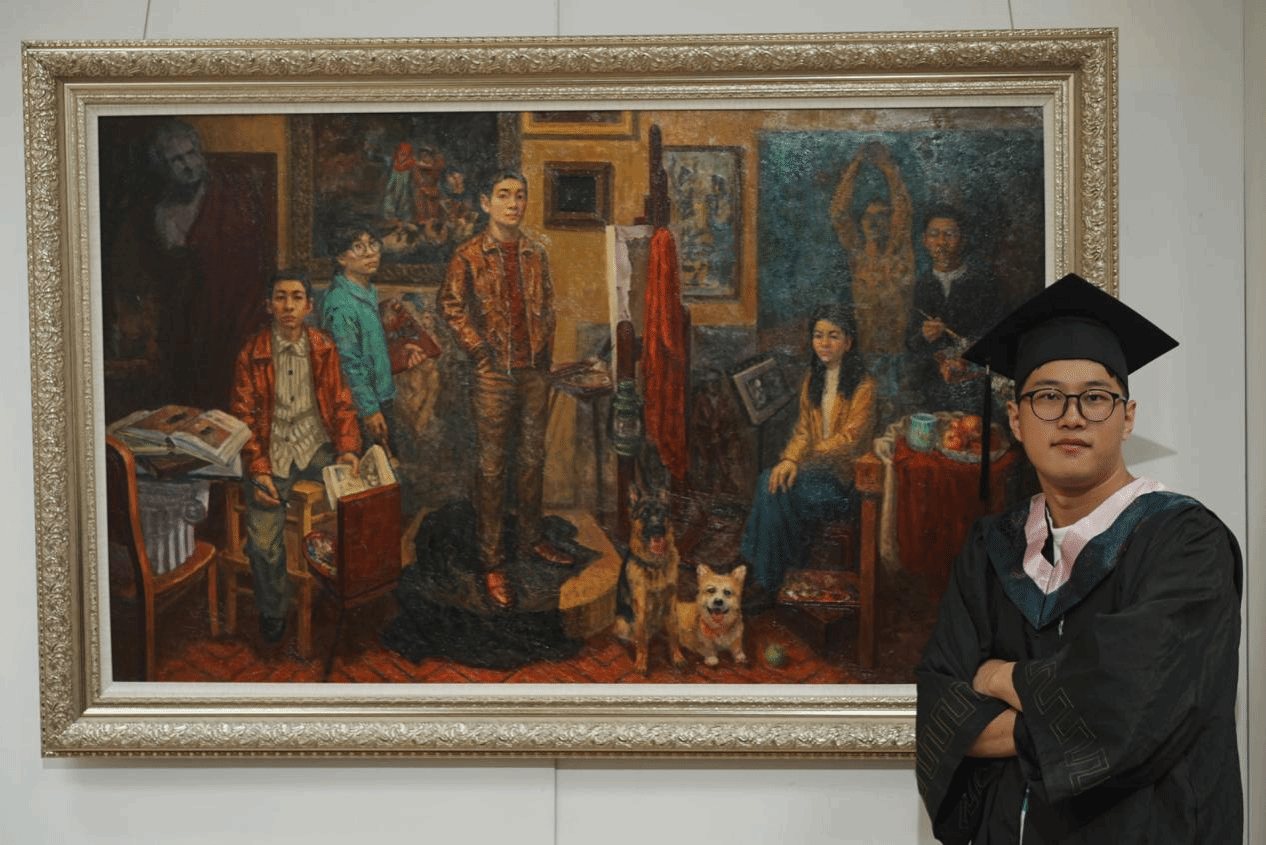 在校期间他刻苦钻研专业知识,提升专业能力。无论遇到怎样的困难与挑战,他始终保持着对绘画的喜爱,课上、课下都付出了大量的时间精力,在画室中常常能看见他努力作画的场景。他认为创作不仅要展现高超的技巧更要通过画作表达自身的思想观点、文化素养和审美情趣。所以,他经常阅读文学、美学、心理学等领域书籍,不断丰富自身文化底蕴,同时参观优秀的美术作品展览进行学习,以便更好的将精神内核表现于作品之中。经过长久的努力,他的作品入选安徽省美术家协会举办的“首届安徽省(鸠兹)小版画作品展”等展览。其专业成绩一直名列前茅,连续四年获得了校级奖学金并被授予“三好学生”、“三好学生标兵”称号。现被推免至东北师范大学继续攻读硕士学位。