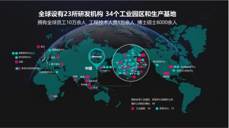 在谷歌与凯度联合发布的《BrandZ™中国全球化品牌50强》中,海信已经连续7年成为海外民众最熟悉的排名前十位的中国品牌,产品远销160多个国家和地区,连续赞助2016年欧洲杯、2018年世界杯和2020年欧洲杯、2022年世界杯等世界顶级体育赛事。海信是国家首批创新型企业,两次获得“全国质量奖”。目前,海信拥有青岛、顺德、江门、斯洛文尼亚、南非、墨西哥等34个工业园区和生产基地,设有青岛、深圳、美国、德国等共23所研发机构,设有66个海外公司和办事处,拥有工程技术人员1万余人,硕士博士8000余人,初步建立了全球协同的研发体系。海信集团因持续研发更加绿色环保的家用电器、积极履行社会责任等卓越表现成功入选《财富》中国ESG影响力榜和APEC中国论坛最佳实践案例。